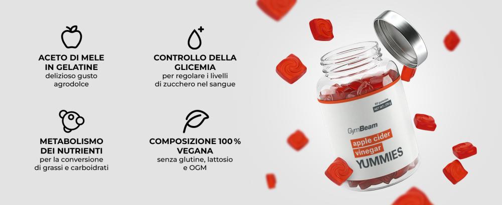Aceto di Mele Yummies con vitamina C e cromo, per il metabolismo di carboidrati, proteine e grassi