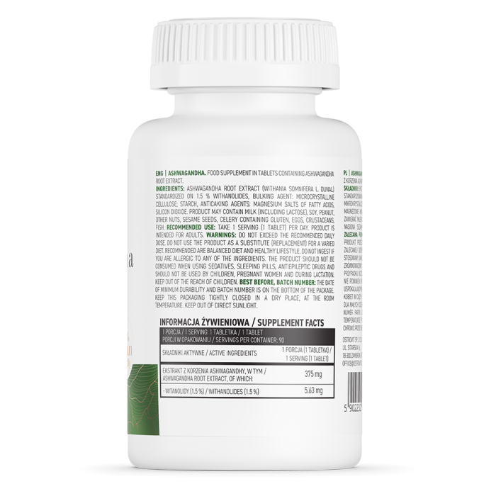 | Estratto di radice di Ashwagandha | 375 mg |