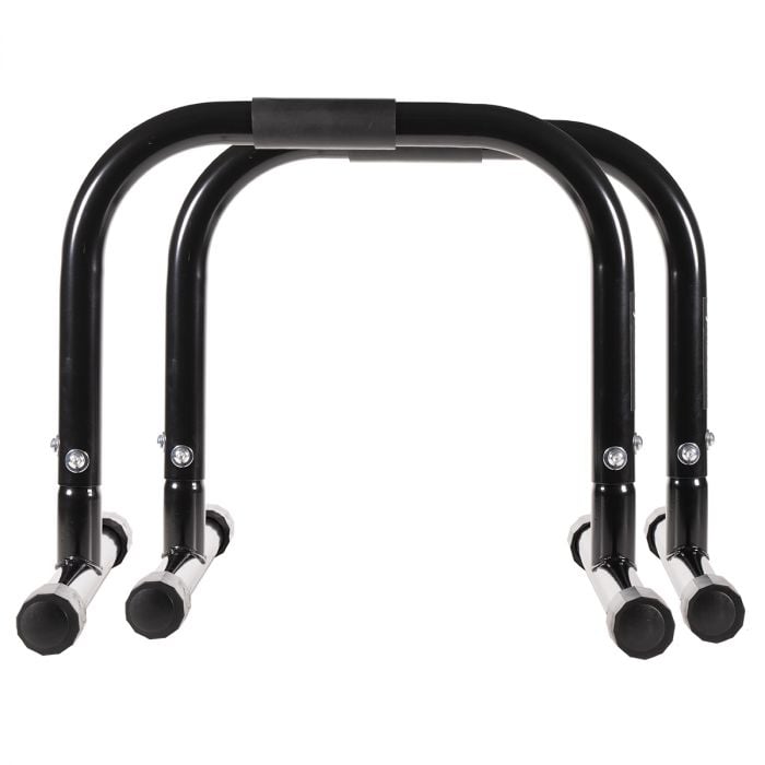 Le Barre Parallele DIP I sono un pratico attrezzo immancabile nella palestra casalinga di tutti gli amanti del fitness. Sono ideali per eseguire allenamenti a corpo libero come flessioni, dip e tanti altri esercizi di ginnastica mirati a rafforzare il core e la parte superiore del corpo. Grazie alla loro elevata stabilità, queste barre sono in grado di sostenere anche i carichi più pesanti. La loro impugnatura presenta un diametro di 38 mm ed è realizzata in materiale antiscivolo, per fornirti il massimo grip. La lunghezza totale delle barre è di 48 cm. Il tubo è collocato a 43 cm di altezza.