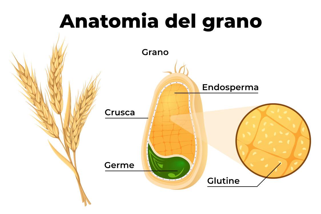 Germe: La parte più interna del chicco, che contiene grassi, vitamine e minerali.