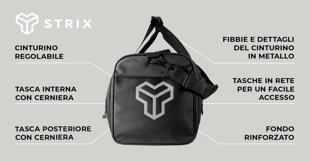 La Borsa sportiva Ultimate Duffle è una borsa top introdotta dalla famiglia premium STRIX. Affascina con il suo design minimalista che presta attenzione ad ogni dettaglio e ai suoi elementi decorativi. Si distingue con un logo STRIX riflettente che ti assicura di essere sempre visibile. Inoltre, offre un ampio spazio di stivaggio, una cinghia per tappetino da yoga e pratiche tasche laterali. È realizzata in resistente poliestere ed è ideale per andare in palestra e per viaggiare.