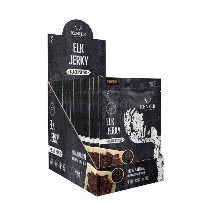 La Carne Essicata di Alce - uno snack gustoso, ricco di proteine e povero di grassi, perfetto da portare in viaggio, a scuola, al lavoro o da gustare ogni volta che hai voglia di qualcosa di saporito