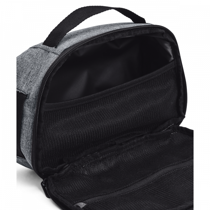 Contain Travel Kit Bag è la compagna ideale per i tuoi viaggi o per la palestra. Ha un volume di 4 litri e conserverà in modo sicuro tutti i tuoi articoli da toeletta o integratori alimentari. La tecnologia UA Storm utilizzata nella sua produzione proteggerà in modo affidabile il contenuto della borsa dalla pioggia e da altri effetti negativi del maltempo. È resistente, affidabile e dotata di diverse cerniere.