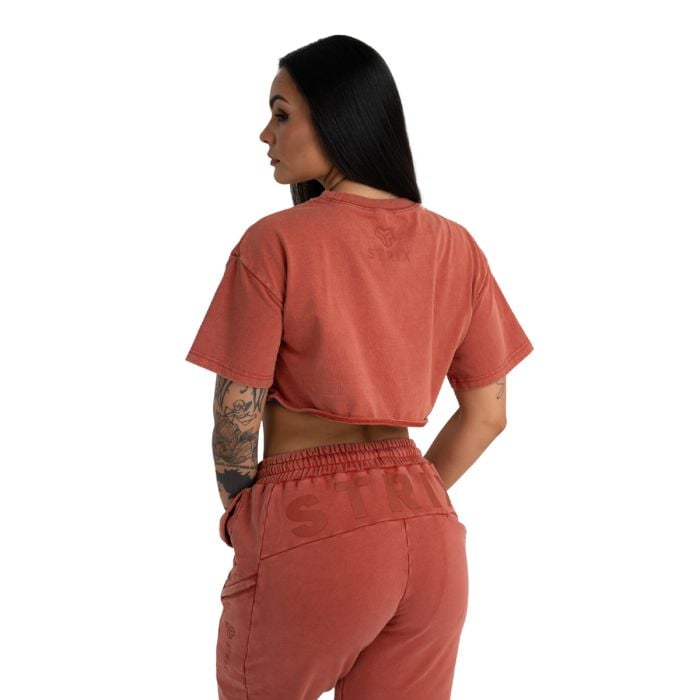 Questo crop top colpisce anche per il suo design accattivante. Ha un classico colletto rotondo e maniche ampie. L'orlo inferiore è inoltre rifinito con una cucitura originale, che crea un effetto di maglietta tagliata alla moda. Sia sul davanti che sul retro, la stampa dell'iconico logo STRIX cattura l'attenzione, rendendo evidente al mondo la tua passione per uno stile di vita sano. Il look unico è completato dal trendy effetto lavato, che conferisce alla T-shirt un leggero tocco vintage. In questo modo il crop top sembra essere stato lavato più volte e quindi leggermente indossato. Il risultato è una caratteristica miscelazione di tonalità più chiare e più scure che rende ogni pezzo originale. Questa maglietta ti aiuterà a stare al passo con le ultime tendenze della moda.