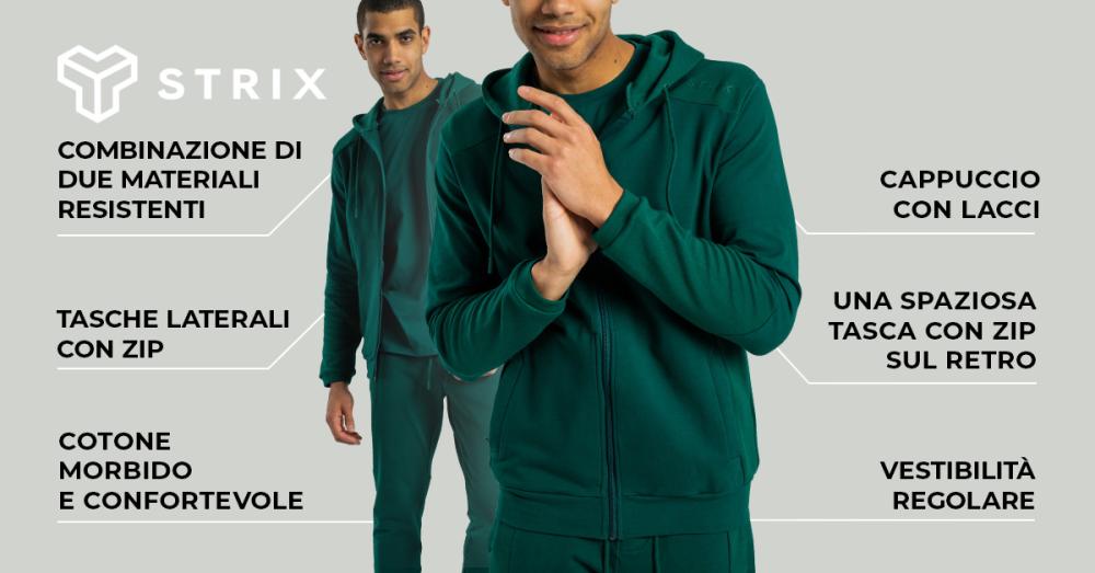 La felpa è adatta a diverse attività, ti darà il comfort assoluto durante il tempo libero, oppure ti offrirà la massima traspirabilità durante le attività sportive o gli allenamenti in palestra. Inoltre, la felpa con zip e cappuccio è facile da abbinare a diversi capi del tuo guardaroba. Presenta anche una pratica tasca posteriore con cerniera che custodirà in modo affidabile il tuo telefono, le chiavi o le cuffie wireless. Entra a far parte dell'élite formata intorno al marchio STRIX ed esprimi pienamente la tua passione per uno stile di vita attivo.