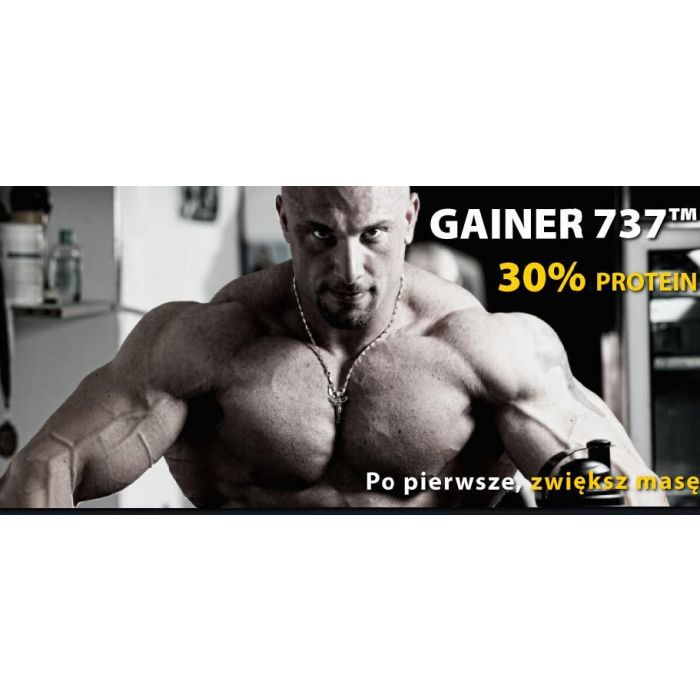 Gainer 737 è un mix complesso di carboidrati, proteine, aminoacidi e vitamine. Ha un gusto delizioso ed è pensato per tutti coloro che vogliono aumentare l'apporto di queste sostanze. La sua formula sovralimentata vanta un'alta percentuale di proteine, che sostengono la crescita e il mantenimento dei muscoli, nonché la salute delle ossa. Le proteine provengono da un trio di proteine del siero di latte sotto forma di concentrato, isolato, idrolizzato e isolato di siero di latte. Anche i noti aminoacidi essenziali l-leucina e l-lisina sono presenti nella formula.