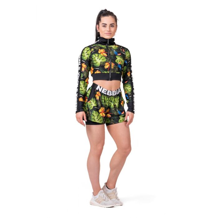 La giacca corta da donna High Energy è un meraviglioso capo sportivo che sarà il tuo fidato compagno durante gli allenamenti intensi o qualsiasi attività per il tempo libero. Il materiale è 75% poliestere riciclato, che allontana il sudore senza problemi ed è molto piacevole al tatto. La giacca vanta una flessibilità impareggiabile perché il restante 25% è elastane, che assicura anche che questo capo si adatti perfettamente alla forma del tuo corpo. Oltre al design con motivi ispirati alla natura, ti innamorerai anche del suo taglio. È dotato di una cerniera e lascia scoperta la zona del ventre. Questa è una scelta di design, in modo da poter mostrare al mondo i tuoi sudati addominali. La giacca non ha cappuccio, quindi nulla ostacolerà le tue prestazioni durante un allenamento. Ultimo ma non meno importante, il logo NEBBIA farà sapere a tutti intorno a te che stai lavorando duramente per raggiungere i tuoi obiettivi.