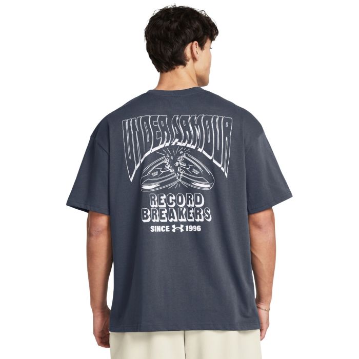 HW RECORD BREAKERS T-Shirt sarà gradita a tutti i fan di Under Armour. È un capo di tendenza che affascina con una grafica moderna. Esprime l'amore per l'esercizio fisico o per uno stile di vita attivo e la voglia di migliorare battendo i record personali. MRealizzata con una combinazione di cotone e poliestere, è sufficientemente traspirante. Allo stesso tempo, ti darà il massimo comfort mentre la indossi. Il taglio oversize con maniche corte allungate contribuisce ulteriormente a questo risultato.