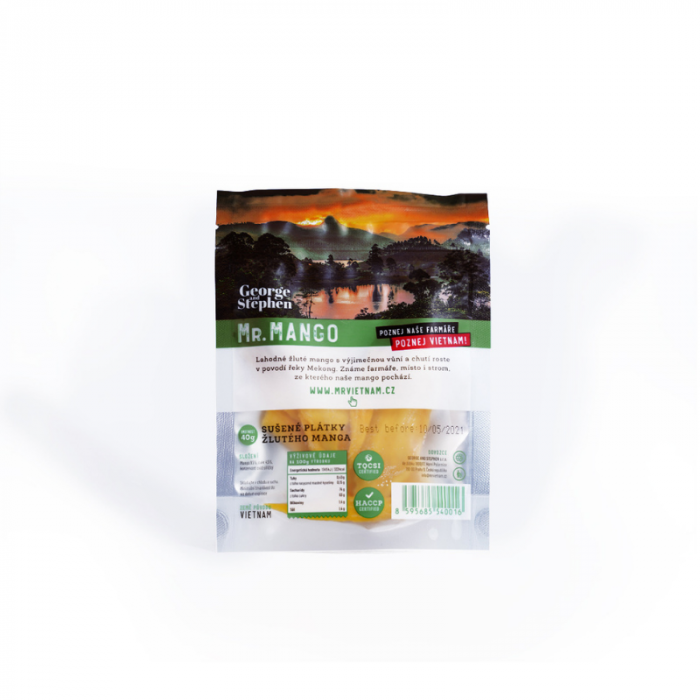 Mr. Mango contiene pezzi di mango essiccati provenienti da una piccola fattoria vietnamita. Si contraddistingue per il suo gusto dolce, in quanto è stato lavorato con le tecnologie più moderne e con il metodo di essiccazione lenta. Grazie a questa particolare lavorazione mantiene un ottimo gusto. È ideale come spuntino veloce.
