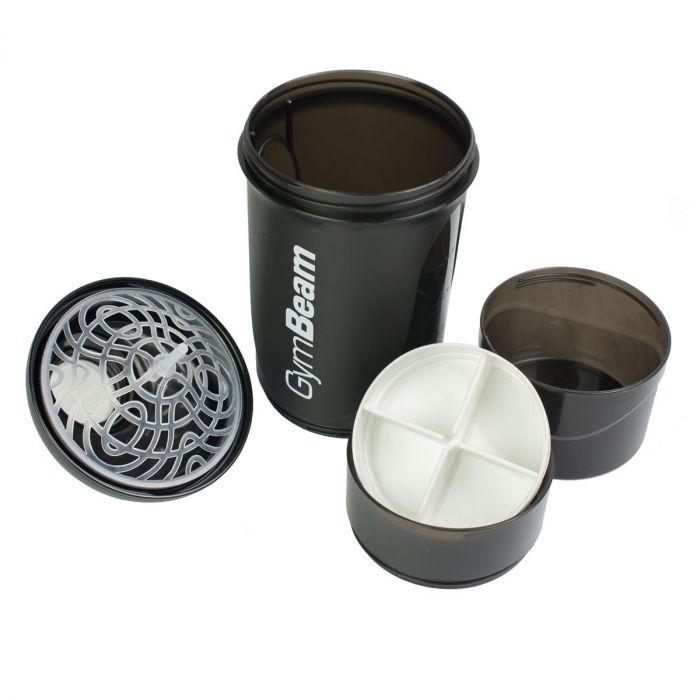 Lo Shaker Multi Scomparto GymBeam è una bottiglia shaker da 600 ml di colore nero composta da tre scomparti. Il primo scomparto è utilizzato per miscelare integratori alimentari in polvere e liquidi come proteine, aminoacidi, bcaa in polvere, stimolanti pre-allenamento e creatina. Il secondo scomparto è dotato di pratici divisori per poter conservare compresse e capsule. Nel terzo scomparto puoi conservare qualsiasi integratore alimentare in polvere. Questa bottiglia shaker è dotata di un classico coperchio a vite e di un filtro interno che permette di mescolare perfettamente tutti i tuoi integratori preferiti.