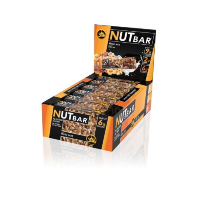 Nut Bar è una barretta di noci composta da una miscela di diverse noci, mandorle e arachidi. Di conseguenza, contiene fino a 9 g di proteine, 4 g di fibre e grassi sani. Questa barretta è un ottimo spuntino, ideale prima e dopo l'allenamento, oltre che come spuntino tra un pasto e l'altro.