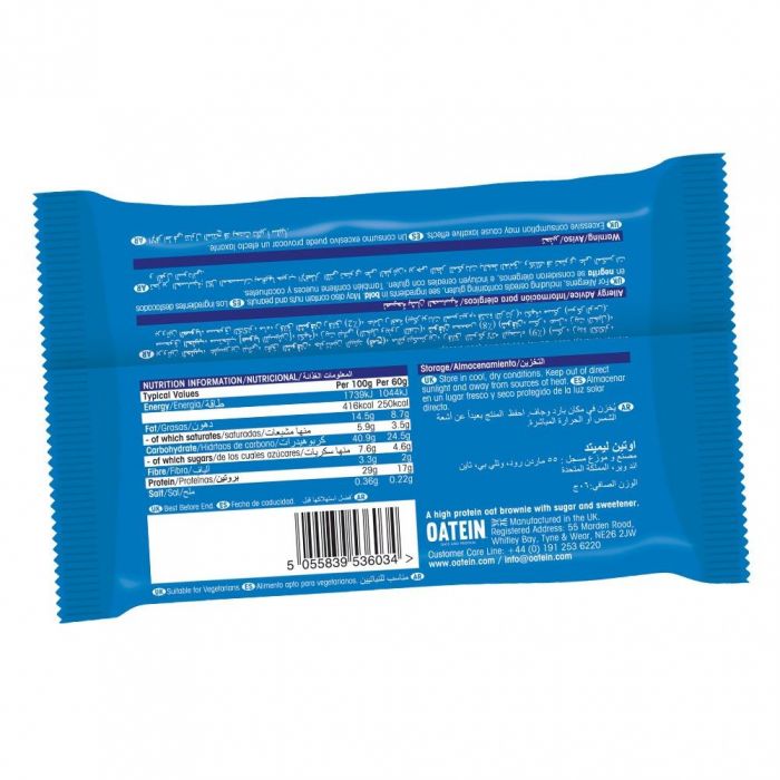 Oatein Brownie è un irresistibile snack proteico ideato da un gruppo di nutrizionisti per soddisfare le esigenze nutrizionali di una sana alimentazione. Gusto eccellente, proteine di qualità, abbondanza di fibre e carboidrati complessi. Questo dolce brownie (60 g) contiene 17 g di proteine, in poche parole, vale la pena averlo sempre a portata di mano se sei un goloso.