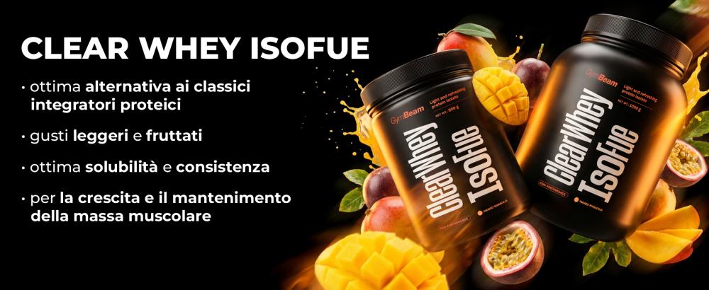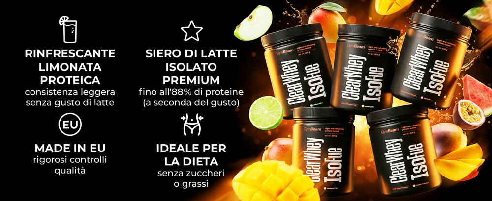 Clear Whey IsoFue è un isolato di siero di latte unico, sviluppato per gli atleti più esigenti. Pertanto, ti fornirà fino all'88% di contenuto proteico, che contribuisce alla crescita e al mantenimento della massa muscolare. Inoltre, è privo di zuccheri e grassi. Il suo gusto rinfrescante che ricorda limonate e succhi di frutta lo rende perfetto per creare delle gustose bevande nutrienti per l'estate.