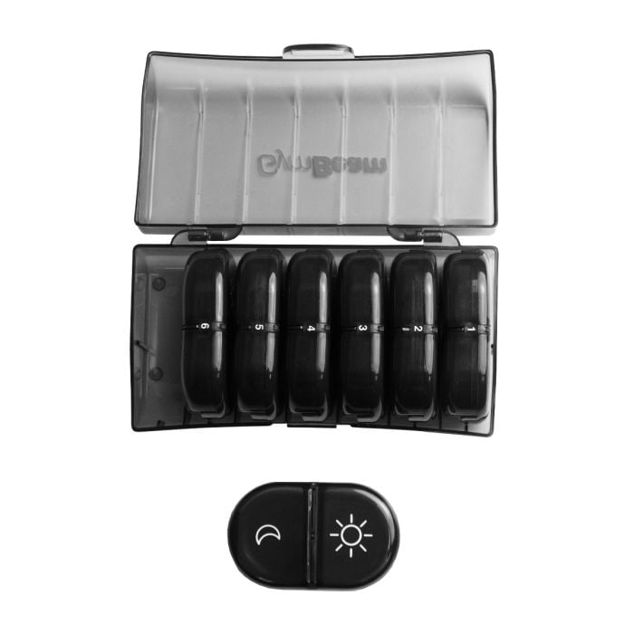 Il Portapillole Settimanale offre una soluzione pratica per organizzare e conservare tutti i tuoi integratori della settimana. Contiene 7 sezioni individuali, ognuna con due scomparti separati per suddividere gli integratori del mattino e della sera. Questo sistema consente di organizzare facilmente la dose giornaliera di vitamine o altri integratori dal lunedì alla domenica.