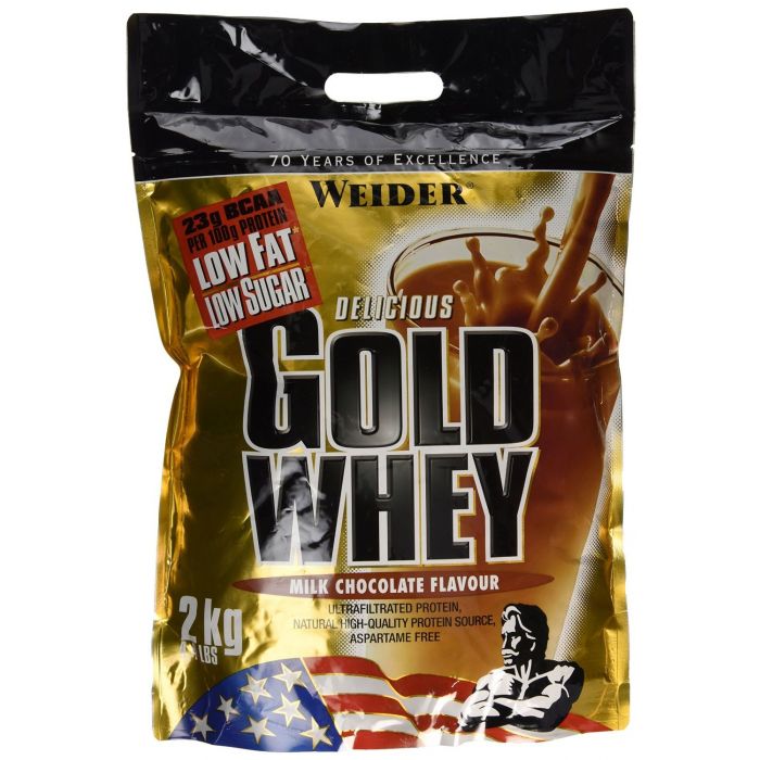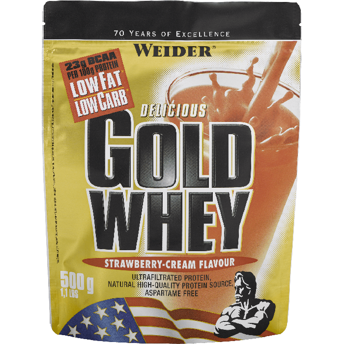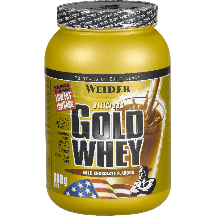 Weider Gold Whey Protein è una proteina del siero di alta qualità progettata per la massima e pura crescita muscolare senza grassi eccessivi, con un forte effetto anti catabolico e anabolico. Weider Gold Whey Protein è idealmente da utilizzare al mattino dopo il risveglio, poco prima e soprattutto subito dopo l'allenamento. È ideale in fase di ripping per modellare la definizione muscolare.