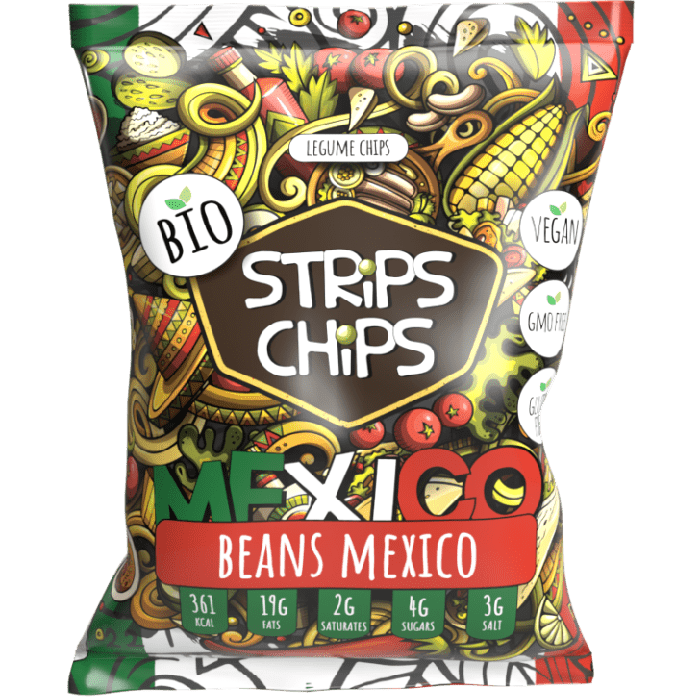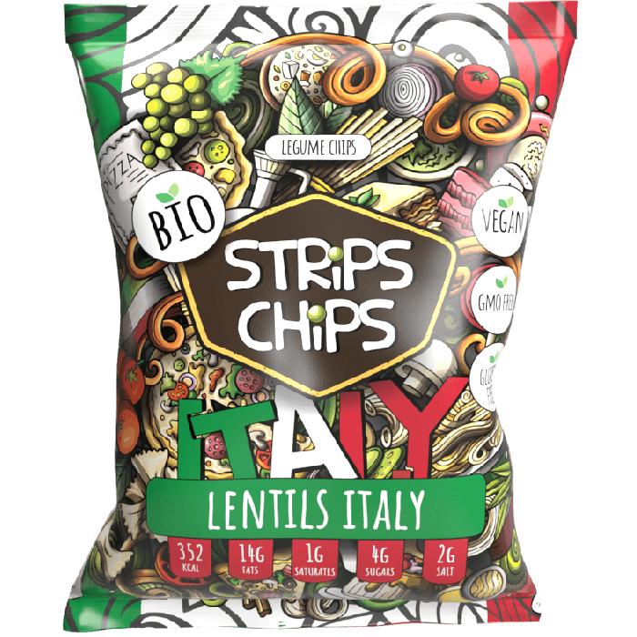STRiPS CHiPS sono snack croccanti a base di legumi con ingredienti vegetali e sono anche un'ottima alternativa alle chips di patate fritte. Hanno un ricco apporto di proteine, grazie al quale servirà come spuntino proteico dopo l'allenamento o per aumentare l'energia. Hanno un'elevata quantità di vitamine, minerali e fibre, ma in compenso non contengono conservanti, coloranti, numeri E o OGM e sono adatti anche ai vegani.