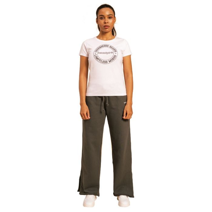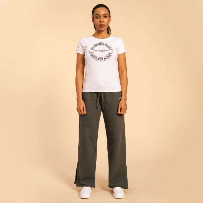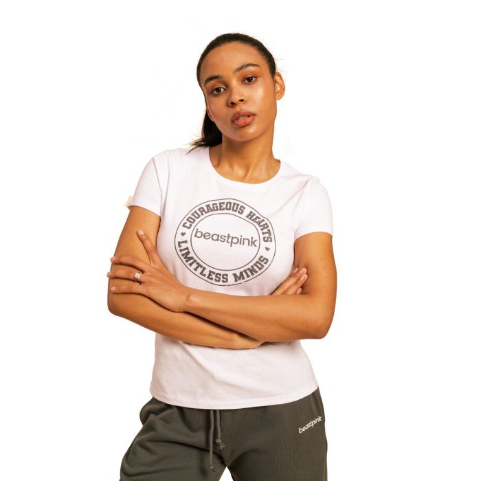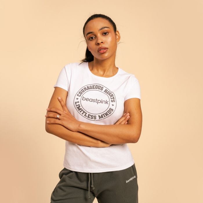 Il tratto distintivo del design è dato dal logo "BeastPink", accompagnato da uno slogan che celebra il coraggio e un mindset senza limiti. Sfoggia al mondo intero la tua determinazione e la tua motivazione a lavorare su te stessa. La T-Shirt Serenity è anche molto facile da abbinare a leggings o jeans, diventando così una scelta versatile per un outfit sportivo da tutti i giorni. Inoltre, è perfetta per fare yoga, pilates o camminate, ma anche da indossare come abbigliamento casual.