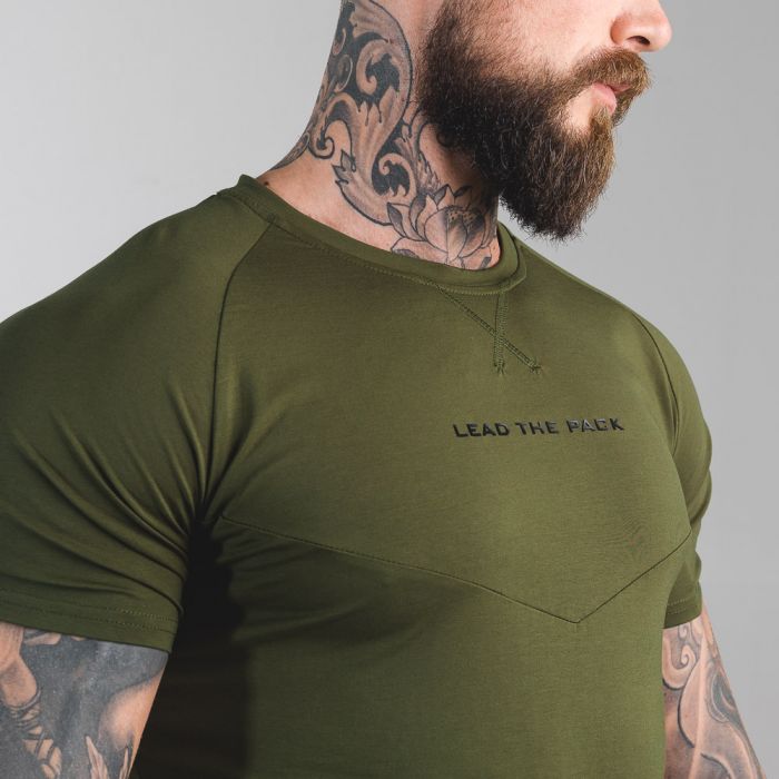 La T-Shirt Statement Olive Green ha un taglio moderno che mette in risalto spalle e bicipiti scolpiti