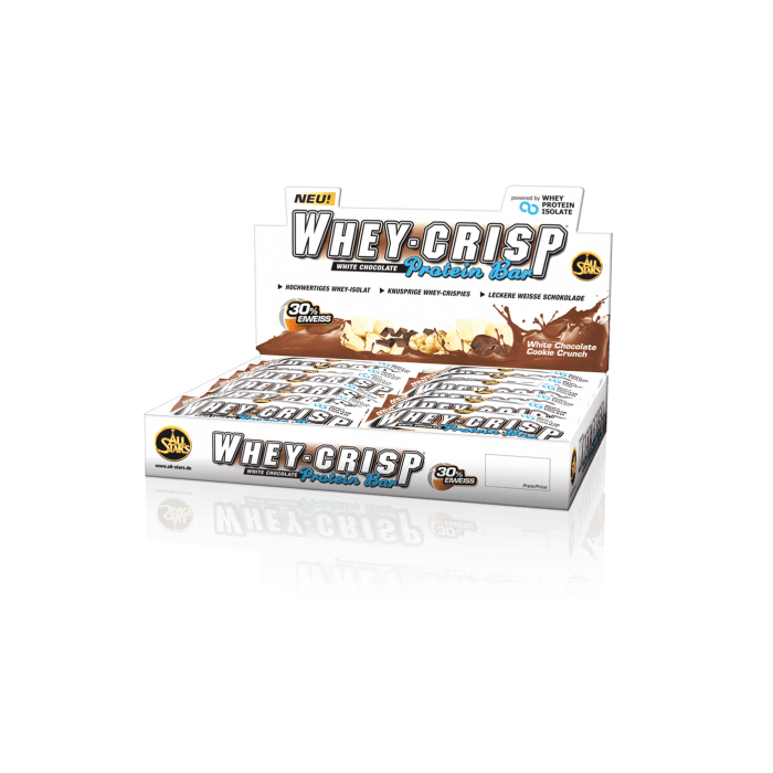 Whey-Crisp Protein Bar è una deliziosa barretta proteica con una proporzione del 30% di proteine da puro isolato di proteine del siero di latte. La barretta è ricoperta di delizioso cioccolato al latte con pezzi di whey crispies. È la scelta ideale se sei in viaggio, al lavoro, a scuola o alla conferenza. Prova uno spuntino sano.