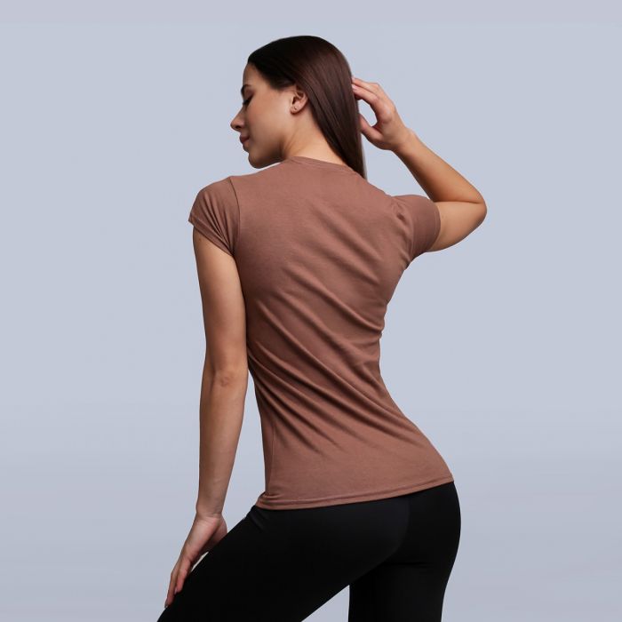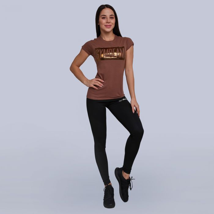 T-shirt da donna Box Logo Brown Bronze è una t-shirt fitness per donne attive ideale sia per l'allenamento che per la giornata casual